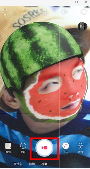 开始拍摄视频,拍的时候张嘴就会出现吐西瓜籽的特效了。