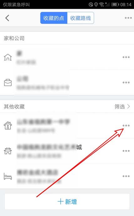 4、这时就会打开收藏的地点的列表,点击想要设置的地址后面的更多按钮
