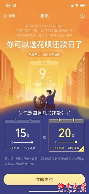 简单来说,当前花呗是1号出帐,10号还款。预约之后,可以选择5号出帐,15号还款;或者10号出帐,20号还款。