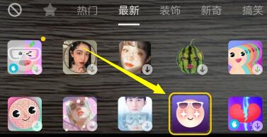 3、点开道具后,在最新一栏中找到“眼睛发射光线”的特效道具,点击使用;