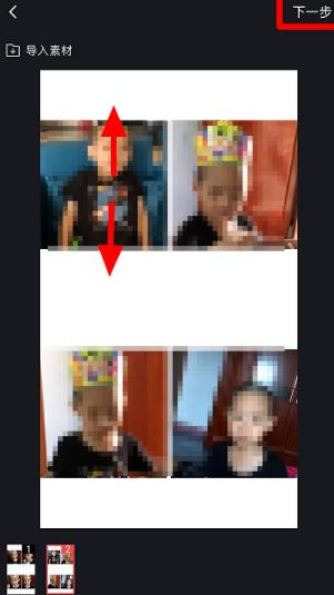 导入照片后,上下拖动适当调整下照片,点击“下一步”。