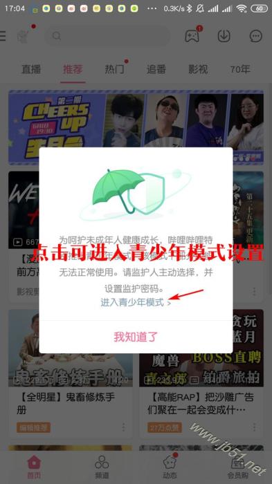 1、想要开启青少年模式,首先打开B站,如果弹出如下界面,可以直接进入