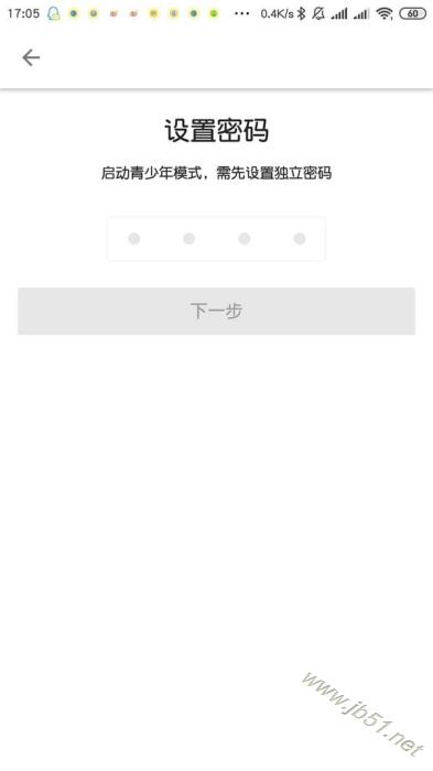 6、进入“确认密码”界面,输入之前设置的密码,然后点击“下一步”即可打开青少年模式