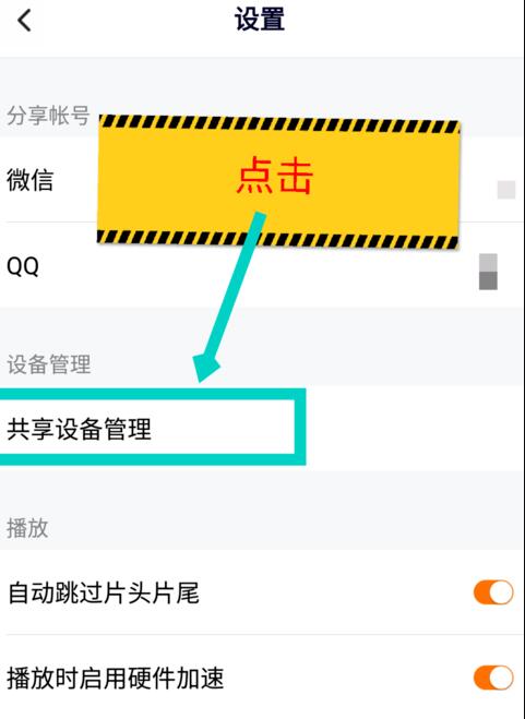 打开设置后,在设备管理下面有个共享设备管理,点击打开。如图