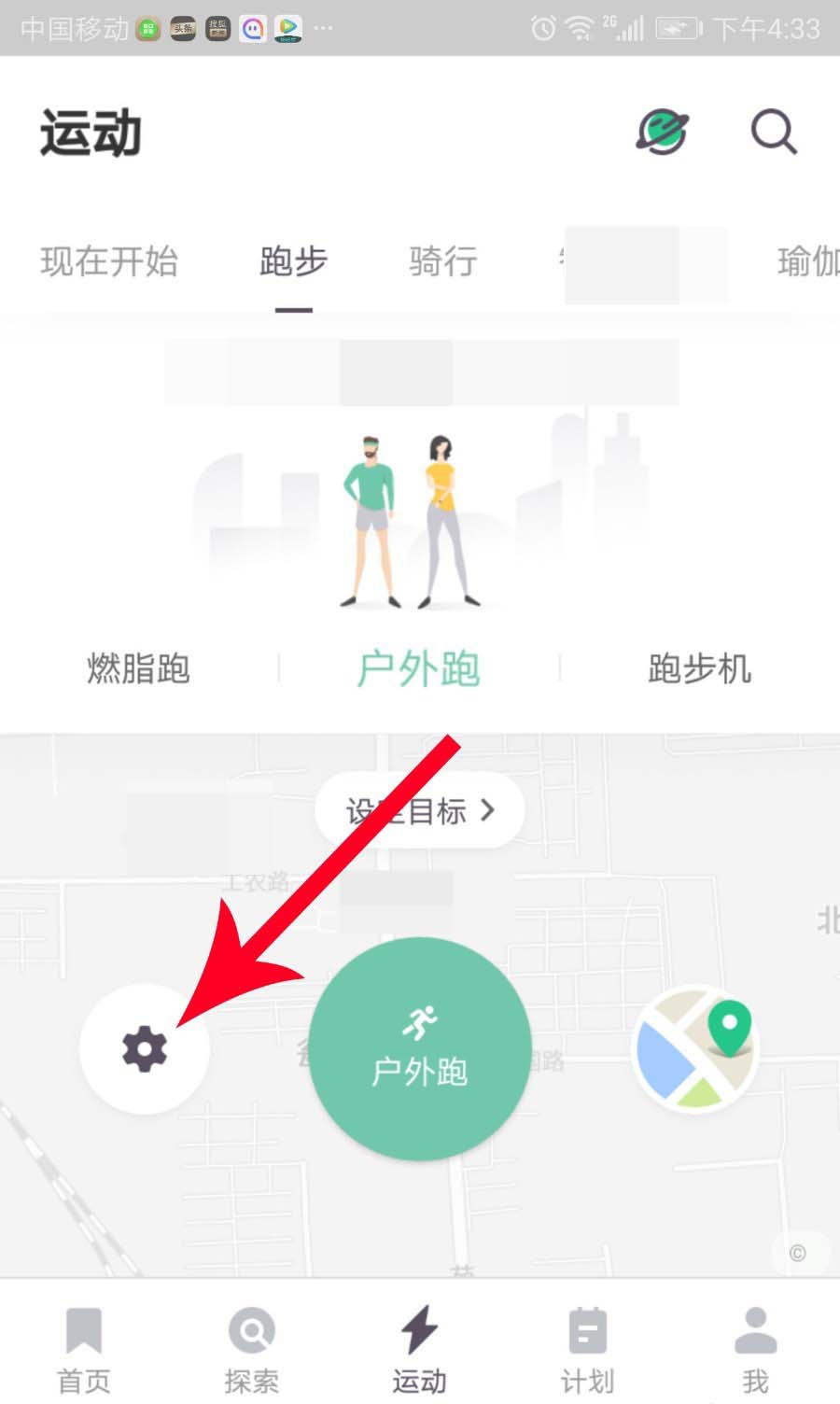 1、想要更换地图的时候打开keep的“跑步”界面,然后点击“设置”图标