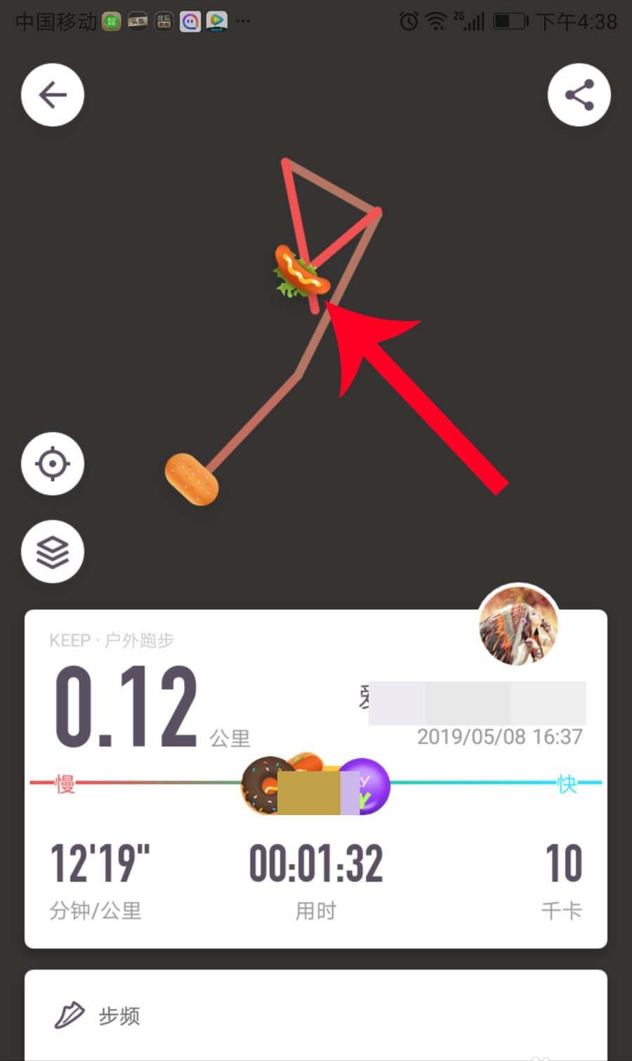 5、使用新的地图完成跑步后,可以在运动记录中看到更换后的地图样式,以及添加的面包香肠个性皮肤