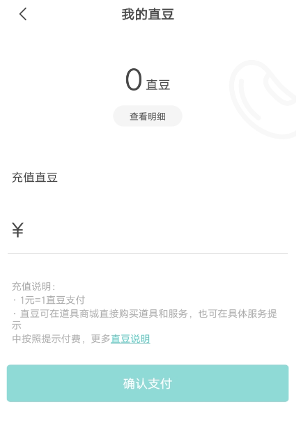 6、输入充值的数量,1个直豆是1元,输入之后点击确认支付