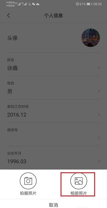 3、进去个人信息界面之后,点击头像,如下图所示: