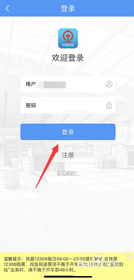 1、我们以手机12306为例,启动铁路12306,登录你的账户,如下图所示
