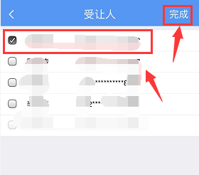 5、进入受让人列表,勾选受让人,点击完成,如下图所示