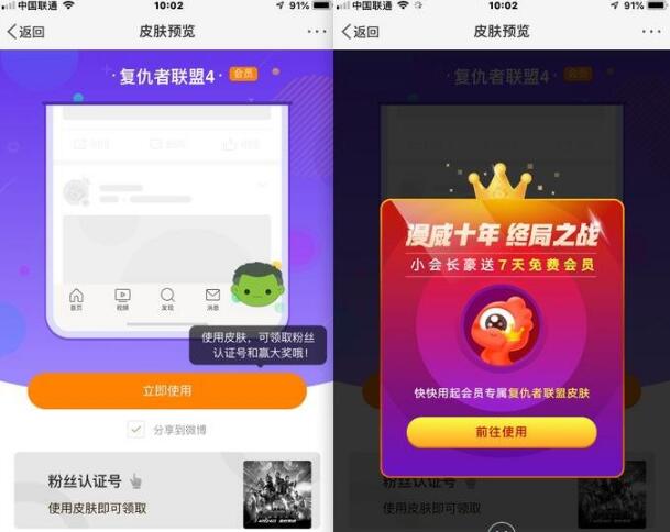 复仇者联盟4现在正在热映,而微博推出了设置复联4轻皮肤送7天会员的活动,参与方式十分简单。相信各位漫威粉都是十分感兴趣的。下面一起来了解下。