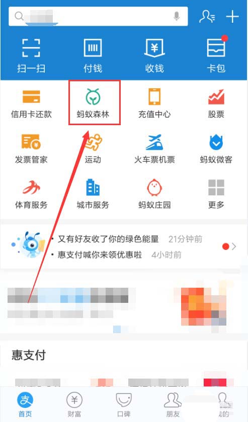 2、在应用的主界面中找到并进入“蚂蚁森林”功能。