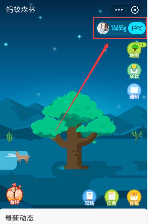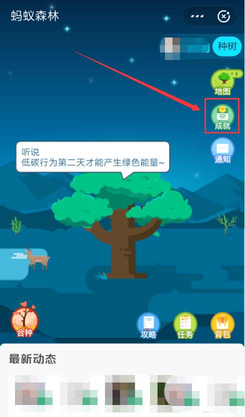 3、在森林界面右上角位置,找到点击“成就”按钮。