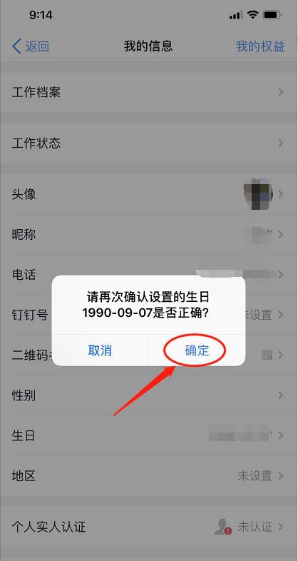 7、在弹出的确认信息中,点击“确认”,生日就设置好了。