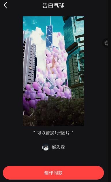 2、紧接着选择告白气球模板下方的“制作同款”功能,下载了模板文件之后,大家就可以导入素材制作视频了。