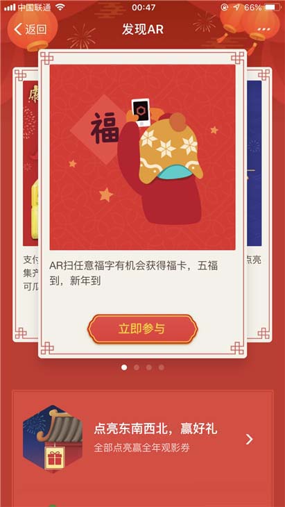 第一波:1月25日开放AR扫卡和蚂蚁森林;