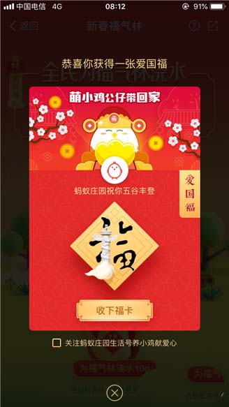 再额外说一下,花花卡,你拿到或者不拿到,你其他几个福拿到了,花花卡没拿到,五福奖励还是有的,花花卡属于额外的一个奖励,没拿到,关系也不大啦。