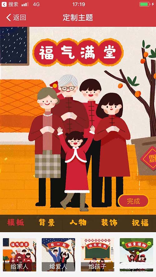 5、进入定制界面,点击模板,选择给家人模板
