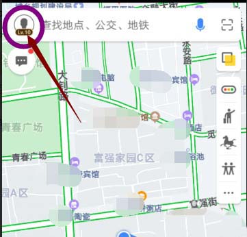 2、点击搜索框最左边的自己的头像图标,进入自己高德地图主页。