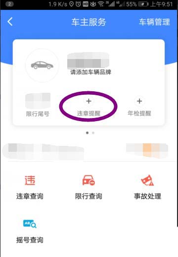 4、在这一步骤里面点击中间的如图所示的违章提醒。