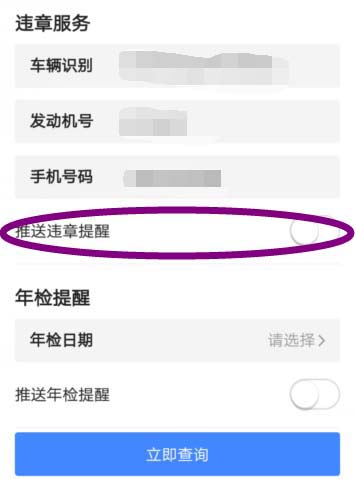 7、打开违章消息推送开关以后,如果有违章系统会及时给你发送消息。