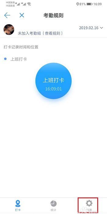 3、进去考勤规则界面之后,点击设置,如下图所示: