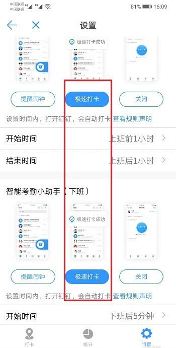 4、可以看到极速打卡是关闭的,如下图所示: