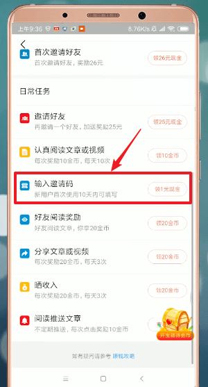 对此感兴趣的朋友还可以通过“邀请好友”功能复制自己的邀请码,让其他人注册今日头条极速版并填写邀请码,就可以获得现金收益哦!
