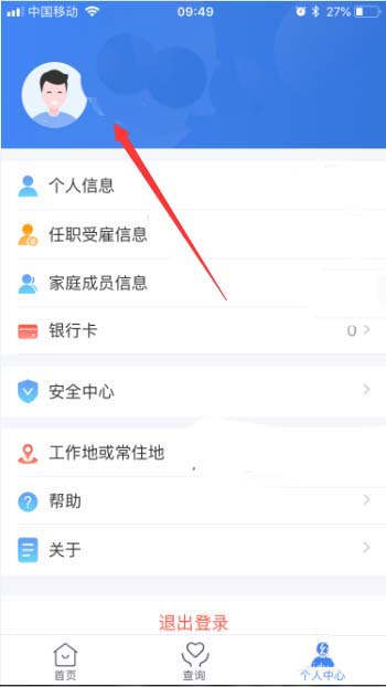 2、进入到了的个人中心,点击了 退出登录。