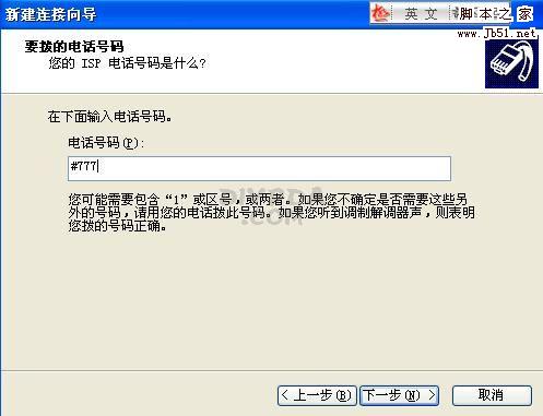 这一步,输入上网的号码#777,见下图