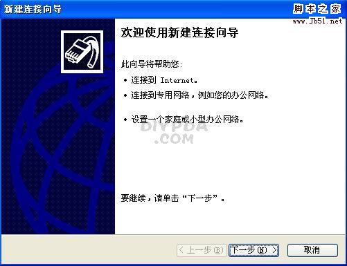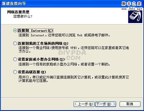 出现下一个对话框,如下图,选“连接到Internet”,点下一步