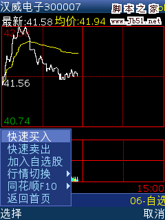 2009年10月31日中国创业板火热上市,同花顺手机炒股3G版亦立即推出创业板行情查询、交易功能,30快捷键迅速进入创业板股票列表,第一时间方便了股民投资创业板的需要,如下图创业板个股委托交易界面。