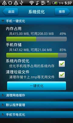 Android手机优化第一招:系统优化,优化手机内存、文件、缓存、电源等。