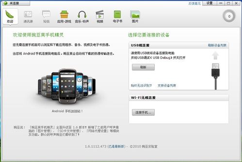 一、首先在电脑中打开豌豆荚手机精灵,然后将Android 手机用数据线与电脑连接: