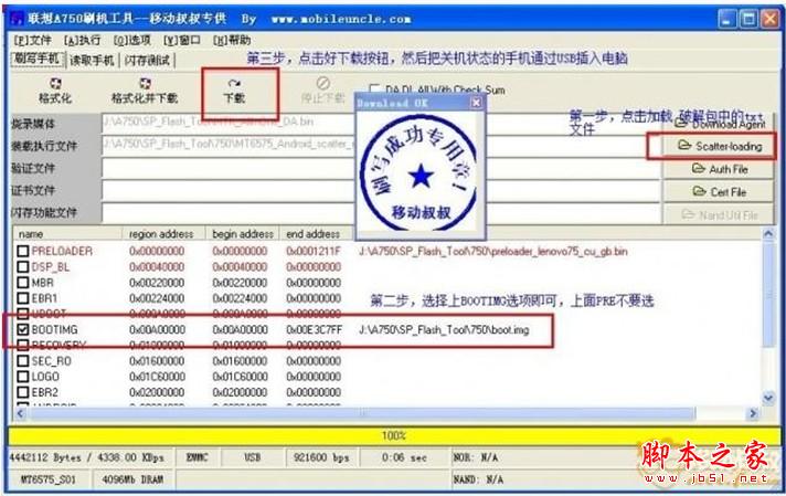 刷机成功后.会自动跳出来上图的那个蓝色的图章窗口.说明刷机成功了.可以把电池扣掉后重新开机就可以了.