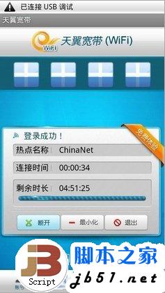 4、自动连接:点击“自动连接”按钮,按照用户已设置的网络顺序进行拨号,接入可用网络。默认连接顺序为 天翼宽带(WIFI)、天翼宽带(3G)、天翼宽带(1X)。