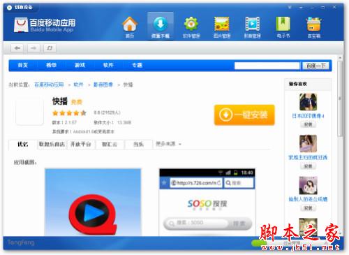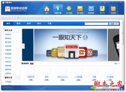 如果你厌倦了91、豌豆荚之类的软件,百度手机助手是一个不错的选择。