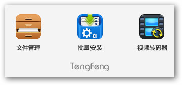 重点说一说百度手机助手的“百宝箱”选项,打开后里面只有三项功能:文件管理、批量安装和视频转码。(如图16)