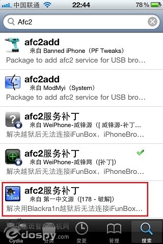 如果Cydia1.0时安装过以下三个deb的话,先卸载。不确定安装与否可以在已安装deb软件包列表里查找,查看Cydia中已安装deb的方法,上面已有过详细介绍。