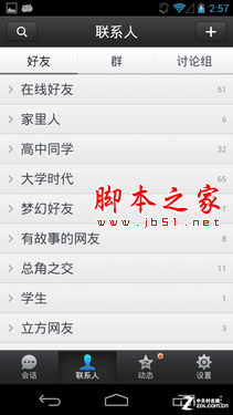 当然,QQ毕竟不是微信。微信的好友是按首字母来分类的,但手机QQ则采用了和PC端完全一致的分类方式,我们可以搜索好友、添加好友、查看在线QQ好友,功能非常全面。