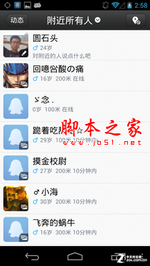 但手机QQ2013有一点是PC端没有的,那就是查看附近用户。针对于移动互联网的特殊属性,手机QQ2013设置了LBS性质的“附近所有人”,我们可以按性别查询附近的所有用户,并与陌生用户进行打招呼、加好友等行为。这一点与微信的功能很像。