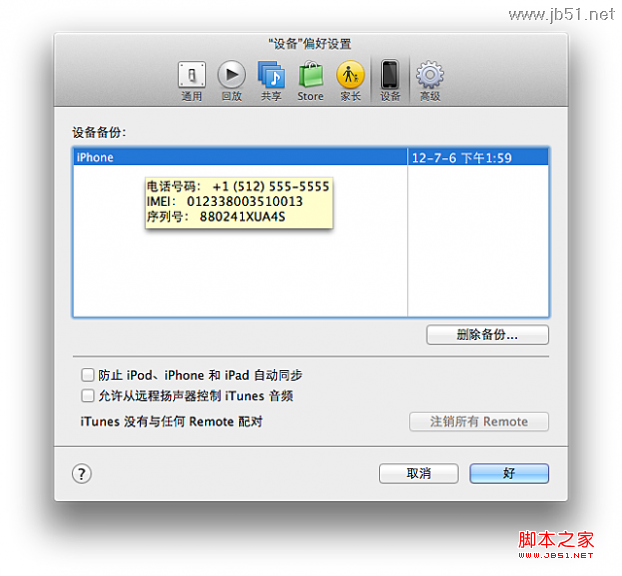 将鼠标置于备份上,以显示已备份设备的序列号。iPhone 和 iPad(Cellular 机型)也会显示 IMEI/MEID 和蜂窝移动数据号码: