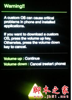 完美刷机提示您,操作这步要以手机进入“Warning”后屏幕显示的语言为准,即国行版为手机屏幕显示简体中文,而国际版为手机屏幕显示除简体中文外的语言包括英文或繁体中文等等。