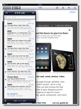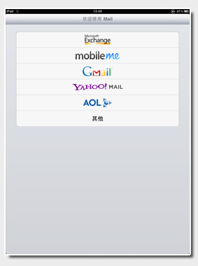 在主菜单中找到Mail图标,用手指轻触图标便可以轻松进入iPad的邮件客户端。