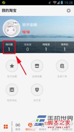 1)打开淘宝手机客户端,拖动下方的菜单栏找到“我的淘宝”,点击“我的淘宝”界面的“待付款”,在“待付款订单”界面点击需要取消的订单进入订单管理。(如下图所示)