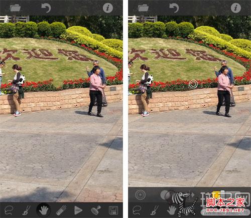 对于一些背景比较复杂的部分,在初步处理后,还可以尝试使用“图章”工具,进行进一步的修补。对于熟悉PS的朋友,这个功能一定不会陌生,选择“图章”,然后点选图片中适当的部分进行采样,挑选合适的图章样式后,就可以在需要修补的地方用手指涂抹覆盖了。