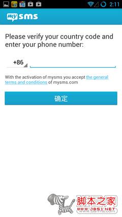 在安卓手机上安装好《Mysms》后,它会让你先登录Mysms帐号,如果有谷歌帐号的话,可以直接登录。在登录以后《Mysms》需要用户用本地的手机号注册,注册后会收到验证用的PIN码,然后输入PIN码后再输入密码就可以完成注册了。