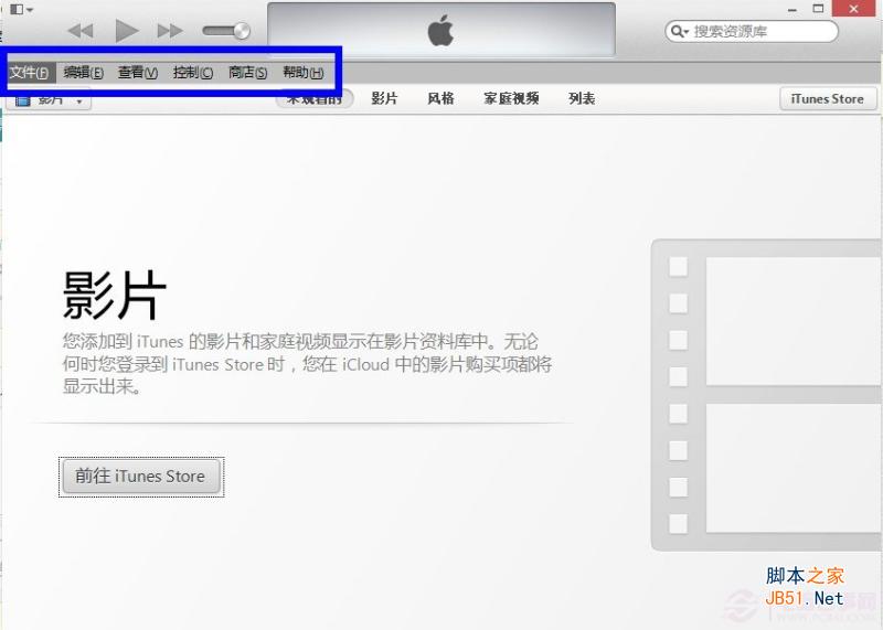 二、接下来请按一下键盘上的“Alt”键,iTunes 就会在顶部出现一排菜单栏,如图所示