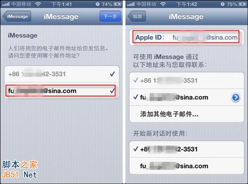 STEP5:最后一步程序会提示用户选择使用哪个邮件地址来接收消息,当然是选择iMessage登陆那个;点击“下一步”按钮后,在iMessage账号管理界面下,即可看到Apple ID已更换为新账号了。