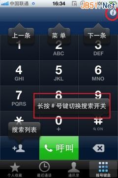 会弹出几个注释框,显示长按“#”就可以关闭搜索功能,也就是说,先长按#,再打114,就不会显示13114337689这个号码了,只会显示114,按拨出键即可拨出电话。